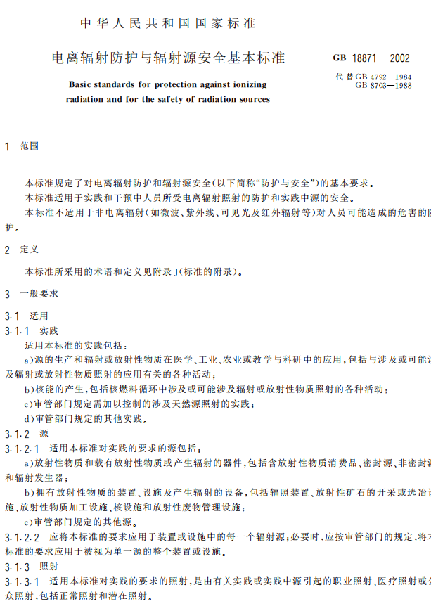 電離輻射防護(hù)與輻射源安全基本標(biāo)準(zhǔn)