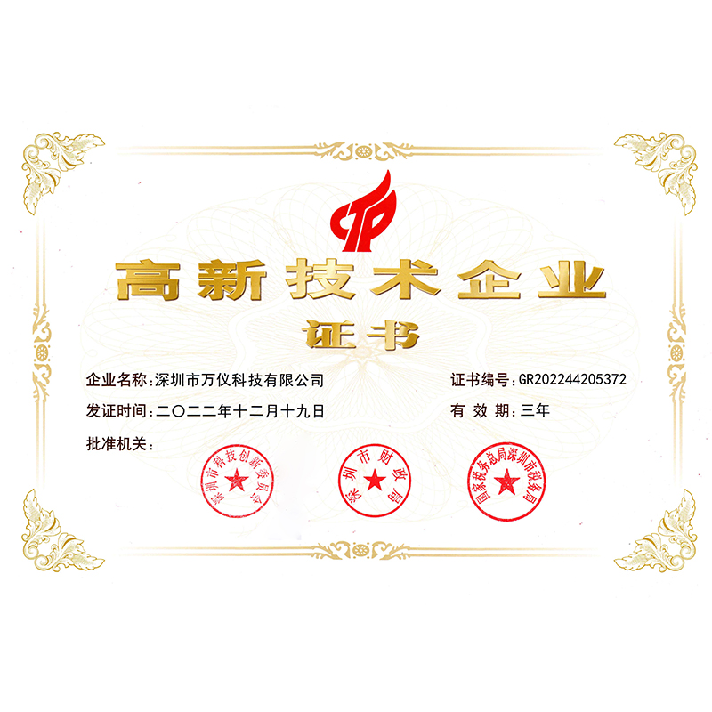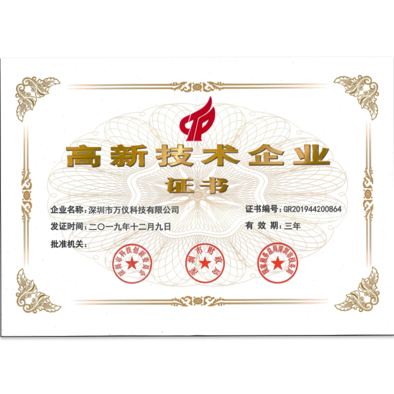 • 萬儀科技高新技術(shù)企業(yè)證書