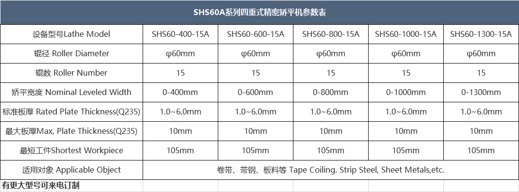 四/六重式精密整平機(jī)是通過整平機(jī)多組滾筒滾壓式矯平,從而達(dá)到平整效果。四/六重式高精密整平機(jī)采用上、下排矯平工作輥與支撐軸承(輪)之間加裝支撐輥,構(gòu)成上下各二/三重共四/六重的組輥結(jié)構(gòu);矯平輥受力分布均勻,結(jié)構(gòu)剛性好,工作輥撓曲變形小,矯平精度高,行程諧波衰減性矯直,從根本上解決普通矯平常見的矯不平、易產(chǎn)生輥印壓痕、工件塌角、鐮刀彎等問題,提高板材的矯正精度,適用范圍廣,材料表面不會留下輥壓痕跡,矯正精度高。