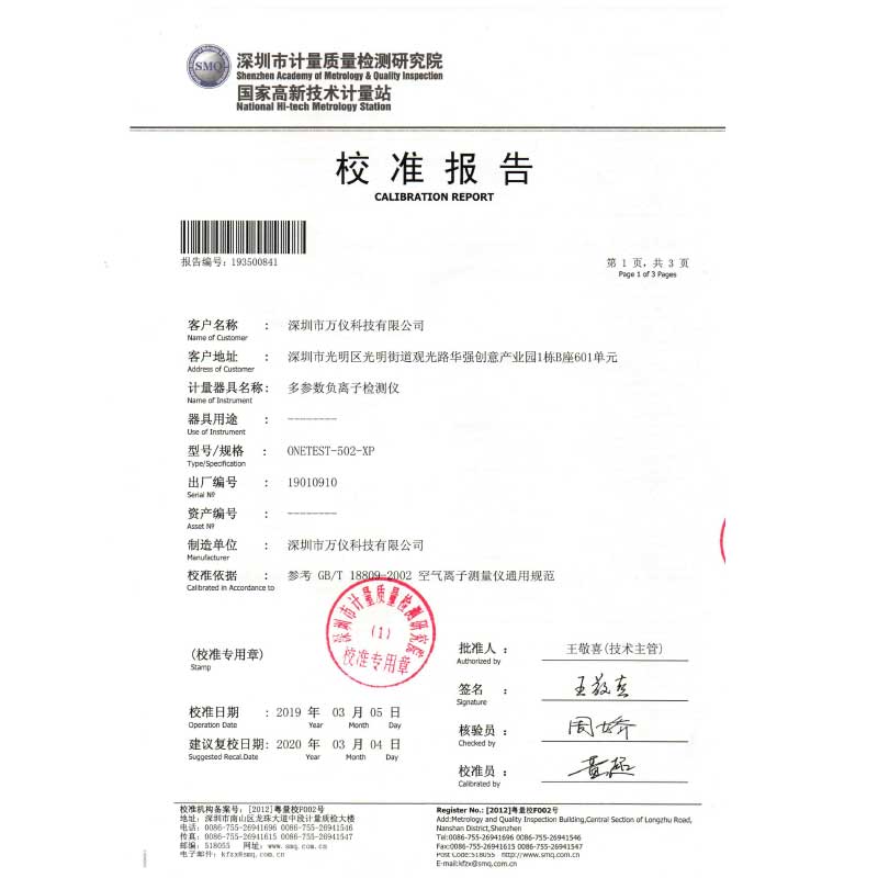 多參數(shù)負氧離子檢測儀ONETEST-502XP-A