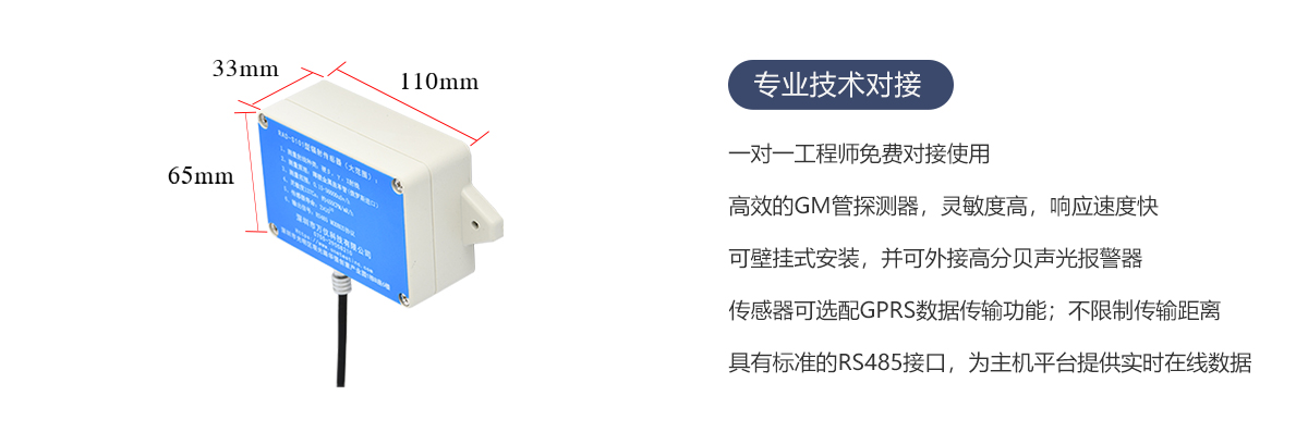 RAD-S101固定式輻射傳感器探頭采用金屬GM計(jì)數(shù)器,數(shù)據(jù)穩(wěn)定可靠,能夠?qū)崟r(shí)快速的檢測(cè)環(huán)境中或產(chǎn)品的硬β,γ和X射線(xiàn),并快速尋找放射源,主要用于輻射監(jiān)測(cè)系統(tǒng)集成,X光機(jī)泄漏,安檢機(jī),醫(yī)院等場(chǎng)合,出廠已經(jīng)標(biāo)定,用戶(hù)可通過(guò)數(shù)字通信協(xié)議直接讀取數(shù)據(jù)。
